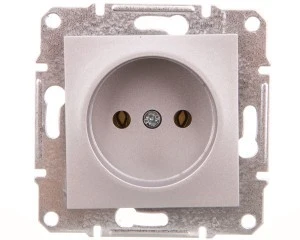 Gniazdo pojedyncze bez uziemienia w kolorze aluminiowym, serii Asfora, marki Schneider Electric, o numerze katalogowym EPH3000161. Długie i solidne pazury utrzymywane są za pomocą metalowych prowadnic w pozycji pionowej, co ułatwia montaż oraz zwiększa bezpieczeństwo po dczas mocowania mechanizmu w puszce instalacyjnej. Zaciski w gniazdach zasilających oznaczone są w czytelny sposób oraz umieszczone są w jednej linii, dzięki czemu znacznie prostsze staje się ułożenie podłączonych kabli przed zamocowaniem gniazda w puszce instalacyjnej (zmniejszenie efektu prężenia przewodów). Zwarta i solidna zabudowa mechanizmu minimalizuje ryzyko przypadkowego kontaktu z elementami pod napięciem i uniemożliwia wypadanie elementów nawet przy całkowitym odkręceniu śrub zacisków. Dodatkowo, solidna ramka montażowa wyk onana z galwanizowanego metalu posiada nacięcia ułatwiające pozycjonowanie. Produkt może być instalowany w ramkach wielokrotnych. Asfora to pełna gama wysokiej jakości łączników i gniazd o eleganckim kształcie oraz szerokiej funkcjonalności. Dostepna jest w 6 kolorach: biały, kremowy, aluminium, stal, brąz oraz antracyt, co pozwala stworzyć 36 kombinacji kolorystycznych. Prosta forma, szeroki asortyment oraz szybka i łatwa instalacja to zalety serii Asfora.