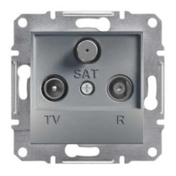 Gniazdo RTV-SAT końcowe, tłumienie 1dB, w kolorze stalowym, serii Asfora, marki Schneider Electric, o numerze katalogowym EPH3500162. Podłączenie przewodów za pomocą zacisków bezgwintowych. Mechanizm gniazda antenowego posiada czytelne oznaczenie zacisków ułatwiające po dłączenie. Dodatkowo, solidna ramka montażowa wykonana z galwanizowanego metalu. Produkt może być instalowany w ramkach wielokrotnych. Asfora to pełna gama wysokiej jakości łączników i gniazd o eleganckim kształcie oraz szerokiej funkcjonalności. Dostepna jest w 6 kolor ach: biały, kremowy, aluminium, stal, brąz oraz antracyt, co pozwala stworzyć 36 kombinacji kolorystycznych. Prosta forma, szeroki asortyment oraz szybka i łatwa instalacja to zalety serii Asfora.