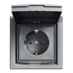 Asfora Gniazdo SCHUKO IP44 z ramką, (jednokrotne) stal EPH3100362 to osprzęt elektroinstalacyjny serii Asfora, marki Schneider Electric.