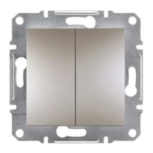 Przycisk podwójny w kolorze brązowym, serii Asfora, marki Schneider Electric, o numerze katalogowym EPH1100169. Urządzenie może byc wykorzystywany jako przycisk dzwonkowy, tradycyjny włącznik światła we współpracy z przekaźnikiem impulsowym lub służyć do załączania inny ch urządzeń o maksymalnym poborze prądu do 10 AX. Podłączenie przewodów za pomocą zacisków bezgwintowych. Długie i solidne pazury utrzymywane są za pomocą metalowych prowadnic w pozycji pionowej, co ułatwia montaż oraz zwiększa bezpieczeństwo podczas mocowania mechanizm u w puszce instalacyjnej. Mechanizm posiada czytelny schemat oraz oznaczenie zacisków ułatwiające podłączenie. Dodatkowo, solidna ramka montażowa wykonana z galwanizowanego metalu posiada nacięcia ułatwiające pozycjonowanie. Produkt może być instalowany w ramkach wielok rotnych.Asfora to pełna gama wysokiej jakości łączników i gniazd o eleganckim kształcie oraz szerokiej funkcjonalności. Dostepna jest w 6 kolorach: biały, kremowy, aluminium, stal, brąz oraz antracyt, co pozwala stworzyć 36 kombinacji kolorystycznych. Prosta forma, szer oki asortyment oraz szybka i łatwa instalacja to zalety serii Asfora.