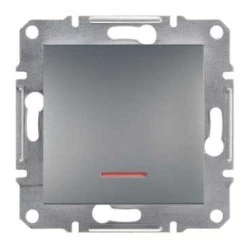 Przycisk w kolorze stalowym, serii Asfora, marki Schneider Electric, o numerze katalogowym EPH1600162. Urządzenie może byc wykorzystywany jako przycisk dzwonkowy, tradycyjny włącznik światła we współpracy z przekaźnikiem impulsowym lub służyć do załączania innych urządz eń o maksymalnym poborze prądu do 10 AX. Przycisk posiada podświetlenie (LED w kolorze niebieskim), dzięki czemu odnalezienie go w ciemności staje się dużo łatwiejsze. Podłączenie przewodów za pomocą zacisków bezgwintowych. Długie i solidne pazury utrzymywane są za pomo cą metalowych prowadnic w pozycji pionowej, co ułatwia montaż oraz zwiększa bezpieczeństwo podczas mocowania mechanizmu w puszce instalacyjnej. Mechanizm posiada czytelny schemat oraz oznaczenie zacisków ułatwiające podłączenie. Dodatkowo, solidna ramka montażowa wykona na z galwanizowanego metalu posiada nacięcia ułatwiające pozycjonowanie. Produkt może być instalowany w ramkach wielokrotnych.Asfora to pełna gama wysokiej jakości łączników i gniazd o eleganckim kształcie oraz szerokiej funkcjonalności. Dostepna jest w 6 kolorach: biał y, kremowy, aluminium, stal, brąz oraz antracyt, co pozwala stworzyć 36 kombinacji kolorystycznych. Prosta forma, szeroki asortyment oraz szybka i łatwa instalacja to zalety serii Asfora.