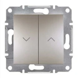 Przycisk żaluzjowy w kolorze brązowym, serii Asfora, marki Schneider Electric, o numerze katalogowym EPH1300169. Podłączenie przewodów za pomocą zacisków bezgwintowych. Długie i solidne pazury utrzymywane są za pomocą metalowych prowadnic w pozycji pionowej, co ułatwia montaż oraz zwiększa bezpieczeństwo podczas mocowania mechanizmu w puszce instalacyjnej. Mechanizm posiada czytelny schemat oraz oznaczenie zacisków ułatwiające podłączenie. Dodatkowo, solidna ramka montażowa wykonana z galwanizowanego metalu posiada nacięcia ułatwiając e pozycjonowanie. Produkt może być instalowany w ramkach wielokrotnych.Asfora to pełna gama wysokiej jakości łączników i gniazd o eleganckim kształcie oraz szerokiej funkcjonalności. Dostepna jest w 6 kolorach: biały, kremowy, aluminium, stal, brąz oraz antracyt, co poz wala stworzyć 36 kombinacji kolorystycznych. Prosta forma, szeroki asortyment oraz szybka i łatwa instalacja to zalety serii Asfora.