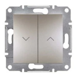 Przycisk żaluzjowy w kolorze brązowym, serii Asfora, marki Schneider Electric, o numerze katalogowym EPH1300369. Podłączenie przewodów za pomocą zacisków śrubowych. Długie i solidne pazury utrzymywane są za pomocą metalowych prowadnic w pozycji pionowej, co ułatwia mont aż oraz zwiększa bezpieczeństwo podczas mocowania mechanizmu w puszce instalacyjnej. Mechanizm posiada czytelny schemat oraz oznaczenie zacisków ułatwiające podłączenie. Dodatkowo, solidna ramka montażowa wykonana z galwanizowanego metalu posiada nacięcia ułatwiające po zycjonowanie. Produkt może być instalowany w ramkach wielokrotnych.Asfora to pełna gama wysokiej jakości łączników i gniazd o eleganckim kształcie oraz szerokiej funkcjonalności. Dostepna jest w 6 kolorach: biały, kremowy, aluminium, stal, brąz oraz antracyt, co pozwala stworzyć 36 kombinacji kolorystycznych. Prosta forma, szeroki asortyment oraz szybka i łatwa instalacja to zalety serii Asfora.