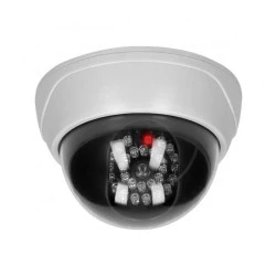 Atrapa kamery kopułkowej posiada realny wygląd kamery monitorującej CCTV oraz diody podczerwieni uruchamiane w nocy.