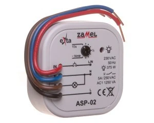 Jednym z produktów znajdujących się w ofercie firmy Zamel jest automat schodowy. Powyższy model urządzenia prawidłowo i bezpiecznie działa przy znamionowym zmiennym napięciu zasilania i sterowania, którego wartość wynosi 230 V. Prąd lampy żarowej jest tu równy 0,2 mA. Znamionowy prąd załączania wynosi 5 A, a maksymalny prąd załączania jest równy 3 A. Maksymalna zdolność łączeniowa dla żarówek wynosi 375 W. Maksymalna zdolność łączeniowa dla świetlówek sięga 90 VA, dla świetlówek z kompensacją DUO jest równa 180 VA, a z kompensacją równoległą sięga 150 VA. Układ połączeń jest tu 4 - przewodowy. Sprzęt tego rodzaju nadaje się do montażu podtynkowego. Opóźnienie wyzwalania może osiągać wartość 0,1 min. Artykuł ma funkcję elektroniczną. Może także załączać impulsem prądowym. Cykl jego pracy jest powtarzalny. Urządzenie wyposażono w jeden styk zwierny.