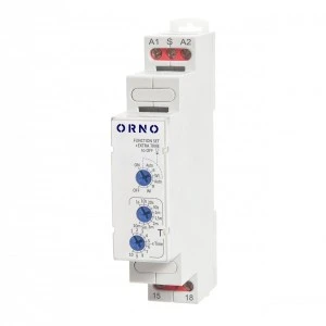 Wielofunkcyjny automat schodowy to modułowe urządzenie, które odpowiada za sterowanie działaniem obwodu oświetleniowego w określonej funkcji czasu. Produkt jest przydatny zarówno w układach przemysłowych, jak i domowych. Jak sama nazwa wskazuje, głównym zmiennym parametrem urządzenia jest właśnie czas. Przekaźnik posiada z przodu trzy pokrętła – pierwsze służy do wyboru trybu pracy, drugie określa zakres czasu (10 zakresów do wyboru), a trzecie nastawę czasu, która realizowana jest w sposób płynny. Ten model realizuje aż 7 funkcji: załączenie na nastawiony czas wyzwalane włączeniem napięcia zasilania lub zamknięciem zestyku sterującego S (AUTO), opóźnione wyłączenie sterowane zestykiem S (R), załączenie na nastawiony czas sterowane zamknięciami zestyku sterującego S, z funkcją wyłączenia przekaźnika wykonawczego R przed upływem czasu (Wi), trwałe załączenie zestyku (ON) / trwałe rozłączenie zestyku (OFF). Dodatkowo tryby AUTO, R oraz Wi mogą pracować z dodatkowym trybem EXTRA TIME, w którym po odmierzeniu czasu z trybu podstawowego, zestyk R zostaje wyłączony na czas 1 s, a potem ponownie załączony na czas 10 s. Po odmierzeniu czasu 10 s zestyk R zostaje rozłączony. Produkt przeznaczony jest do montażu na szynę DIN 35mm w położeniu dowolnym, a solidne zaczepienie gwarantują dwa zaczepy - górny i dolny. Montaż przewodów w zaciskach odbywa się za pomocą śruby uniwersalnej. Napięcie zasilania - 230VAC.