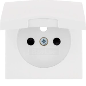 B.3/B.7 Płytka czołowa z przysłonami styków do gniazda z uziemieniem, z pokrywą, biały mat 3965831909