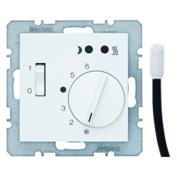 Berker Q1 Regulator temp. podłogi ze stykiem rozwiernym, elementem centralnym, łącznikiem i 2 diodami LED biały aksamit 20346089