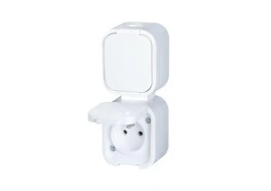 B2 Gniazdo podwójne 2P+Z bryzgoodporne z klapką w kolorze czarnym IP54 pionowe biały 00060278