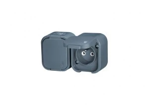 B2 Gniazdo podwójne 2P+Z bryzgoodporne z klapką w kolorze wyrobu IP54 szary 00060278