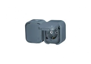 B2 Gniazdo podwójne 2P+Z SCHUKO bryzgoodporne z klapką w kolorze wyrobu IP54 szary 00060278
