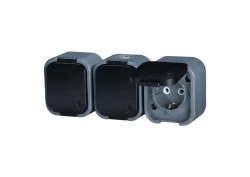 B2 Gniazdo potrójne 3x2P+Z SCHUKO bryzgoodporne z klapką w kolorze czarnym IP54 szary/czarny 00060278