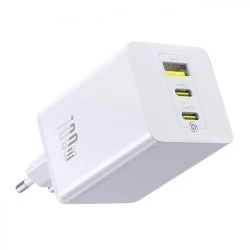 Baseus EnerFill FE11 to nowoczesna ładowarka sieciowa o mocy do 100 W, która umożliwia szybkie i bezpieczne ładowanie kilku urządzeń jednocześnie. Dzięki dwóm portom USB-C oraz jednemu portowi USB-A możesz zasilać laptopa, tablet, smartfon i inne akcesoria bez potrzeby korzystania z kilku różnych zasilaczy.
