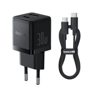 Baseus Palm P1011160A113‑01 30W szybka ładowarka sieciowa z gniazdem USB + USB‑C PD 3.0 PPS + kabel 1m