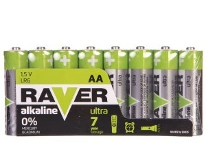 W ofercie Raver można znaleźć bogaty wybór baterii alkalicznych, których powyższy model RAVER ULTRA występuje w rozmiarze AA, czyli tzw. tradycyjnych paluszków. Długość artykułu sięga 50 mm, a jego średnica mierzy 14,5 mm. Powyższy model artykułu jest modelem manganowym. Baterię przystosowano do sprawnej i bezpiecznej pracy przy znamionowym napięciu, którego wartość wynosi 1,5 V.