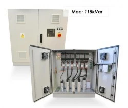 BKL-M-115/5 Automatyczna bateria kondensatorów do kompensacji mocy biernej indukcyjnej, moc 115kVar przy 440V, 23 poziomy regulacji z rozdzielczością 5kVar.
