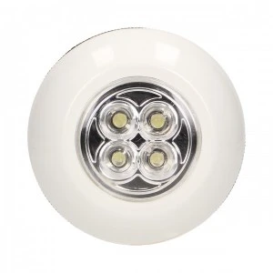 Lampka dotykowa wyposażona w 4 diody LED. Dzięki mocnemu i energooszczędnemu strumieniowi światła oraz brakowi jakichkolwiek przewodów, lampka będzie idealnym źródłem światła np. w głębokiej szafie, kuchni lub sypialni. Mocowana jest za pomocą taśmy samoprzylepnej, dzięki czemu można umieścić ją wszędzie tam, gdzie potrzebujemy źródła światła. Odznacza się niewielkim zużyciem baterii przy znacznej mocy świecenia. Włączana przez naciśnięcie lampki.