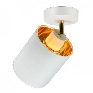 BATI to oprawa ścienno-sufitowa przystosowana na 1 żarówkę z gwintem E27 o maksymalnej mocy świecenia 60W (brak w zestawie). Zastosowanie wymiennego źródła światła pozwala każdemu użytkownikowi na indywidualny dobór rodzaju żarówki i na dostosowanie jej kształtu oraz barwy światła do własnych preferencji. Lampa utrzymana jest w stylu nowoczesnym i doskonale wkomponuje się w pomieszczenia utrzymane w stylu minimalistycznym, nawet industrialnym. BATI to interesująca lampa. Klosz ma klasyczną, cylindryczną formę i biały kolor, jednak jego wnętrze zaskakuje barwą miedzi, która przepięknie odbija światło i tworzy ciekawy efekt świetlny. Ponadto klosz jest ruchomy, więc snop światła można skierować w dowolną stronę. Korpus oprawy wykonany jest z metalu malowanego proszkowo, z kolei klosz jest połączeniem tworzywa sztucznego i tkaniny syntetycznej.