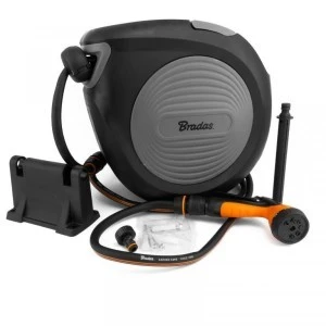 Automatyczny bęben BLACK LINE to wygodne rozwiązanie do podlewania dzięki systemowi spowalniającemu zwijanie węża i obrotowemu uchwytowi ściennemu na promień 180°. Bęben można szybko zdjąć z uchwytu ściennego i wygodnie przenieść w inne miejsce dzięki wbudowanemu uchwytowi do przenoszenia i wyciąganemu trzpieniowi. Zestaw zawiera niezbędne akcesoria do montażu i użytkowania. Odporna obudowa chroni wąż przed promieniowaniem UV, kurzem i uszkodzeniami. Dodatkowe akcesoria ułatwiają montaż i użytkowanie.
