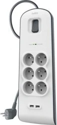 Belkin 2M, 6‑portowa listwa + 2x USB‑A 2.4A, 650J