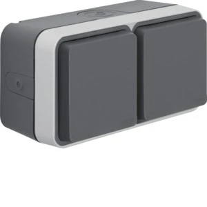 Berker W.1 Puszka natynkowa podwójna pozioma 2 wejścia IP55 szary 6719323505