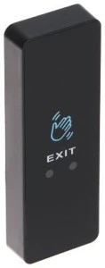 Bezdotykowy przycisk do wyzwolenia sygnału otwarcia drzwi w systemach kontroli dostępu. SPECYFIKACJA Typ styku: NO, NC Zasięg detekcji: 50 mm ... 200 mm Klasa szczelności: IP68 Wybrane cechy: Podświetlenie w kolorze niebieskim + zielony, Regulacja czasu otwarcia : 0.3 ... 30 s Zasilanie: 12 ... 24 V DC Pobór prądu: 20 mA (tryb czuwania) 40 mA (praca) Materiał wykonania: Aluminium + Tworzywo sztuczne Waga: 0.06 kg Wymiary: 115 x 40 x 15 mm Elektronika zabezpieczona przed wodą płytka zalana żywicą