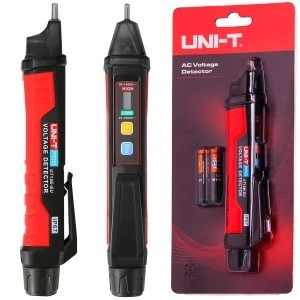 Nowoczesny miernik UT12E-EU posiadający funkcję sygnalizacji występowania napięcia zmiennego (AC) w zakresie od 24V do 1000V. Sygnalizacja następuje poprzez sygnał dźwiękowy (buzzer) oraz świetlny (zapalenie się lampki LED). Detektory napięcia serii UT12 posiadają czujniki napięcia, latarkę i alarm dźwiękowy. CAT IV 1000 V gwarantuje bezpieczeństwo użytkowania.