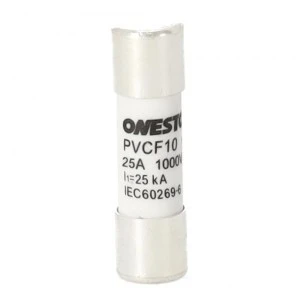 Bezpiecznik rurkowy ONESTO PVCF10-25 to cylindryczna wkładka topikowa o wymiarach 10x38 mm, przeznaczona do ochrony instalacji fotowoltaicznych oraz niskonapięciowych systemów prądu stałego.