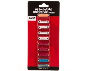 Zestaw bezpieczników samochodowych cylindrycznych- Natężenie: 1x5A 4x8A 3x16A 2x25A- Opakowanie: 10 sztuk/blister