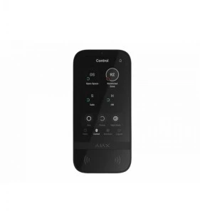 Keypad Touchscreen BLACK to bezprzewodowa klawiatura z ekranem dotykowym przeznaczona do zarządzania systemem alarmowym Ajax. Ekran posiada wszystkie niezbędne do sterowania elementy. Automatyczna regulacja jasności i elegancki szklany materiał oferuje estetykę i wygodę.