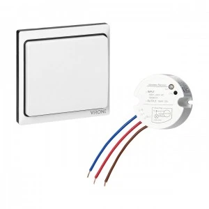 Pojedynczy, bezprzewodowy włącznik z odbiornikiem działa bez użycia baterii. Energia elektryczna, potrzebna do przesłania sygnału radiowego z nadajnika, wytwarzana jest poprzez naciśnięcie przycisku. Urządzenie możesz wykorzystać jako zwykły włącznik światła lub jako urządzenie sterujące innymi urządzeniami elektrycznymi. Jeden odbiornik może współpracować z maksymalnie 10 nadajnikami (przyciskami). Taki rodzaj połączenia umożliwia sterowanie tym samym oświetleniem z wielu różnych miejsc. Ponadto do jednego nadajnika (przycisku) można podłączyć dowolną ilość odbiorników, co pozwala na sterowanie wieloma urządzeniami, na przykład oświetleniem w różnych pomieszczeniach z poziomu jednego, tego samego przycisku. Zestaw zawiera jeden nadajnik (przycisk) i jedne odbiornik. Włącznik ma wbudowaną pamięć, dzięki czemu nawet po zaniku zasilania i ponownym włączeniu odbiornik będzie pamiętał zaprogramowane nadajniki (przyciski). Włącznik wykonany jest z wysokiej jakości tworzywa sztucznego. Ma standardowy kwadratowy kształt i prosty, ale elegancki wygląd. Będzie dobrze prezentował się na każdej ścianie.