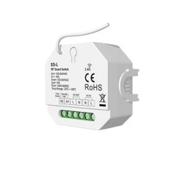 Bezprzewodowy włącznik oświetlenia niewielkie urządzenie służące do uzyskania kontroli nad standardowymi obwodami elektrycznymi przeznaczonymi na napięcie 230VAC o maksymalnej obciążalnosći prądowej 15A. Urządzenie pozwala na załączenie oraz wyłączenie obwodu elektrycznego, przy użyciu zdalnej drogi radiowej, wspieranej przez szereg nadajników takich jak piloty led bądź panele naścienne LED. Dodatkowy dostęp do wyłącznika oświetlenia SS-L może odbywać się poprzez wejście przeznaczone na przycisk dzwonkowy. Tego typu bezprzewodowy wyłącznik SS-L posiada szereg zastosowań, od załączania oświetlenia LED 230VAC, po zdalne sterowanie np. zasilaczy do led czy różnego rodzaju urządzeń 230VAC. Montaż odbywa się do standardowej puszki fi60 lub na szynę DIN-TH35 z użyciem adaptera znajdującego sięw zestawie