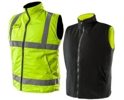 Wspomniany bezrękawnik został wykonany z najwyższej jakości, starannie dobranej oraz wyselekcjonowanej tkaniny. Jest to materiał dwustronny. Jedna z warstw ma czarny, uniwersalny kolor, a druga została wykonana z materiału fluorescencyjnego. Dzięki temu ten model zapewnia doskonałą widoczność. Ten model jest bardzo praktyczny. Ma bowiem wszytą kieszeń na smartfona, a także na długopis. Prezentowany model jest niezastąpiony przy różnego rodzaju pracach, na przykład na budowie. Bezrękawnik świetnie sprawdzi się również kierowcom. Dany tutaj model jest dostępny w rozmiarze L.