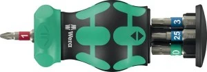 Bardzo mała rękojeść z bardzo krótkim uchwytem do bitów idealnie nadaje się do trudno dostępnych miejsc. Drobnozębna grzechotka zintegrowana z rękojeścią zapewnia szybką pracę. Intuicyjne przełączanie: przełączenie w prawo powoduje zmianę kierunku pracy na dokręcanie w prawo, przełączenie w lewo powoduje zmianę kierunku pracy na dokręcanie w lewo. Mechanizm zapadkowy można zablokować w pozycji 0 dla zapewnienia precyzyjnej pracy. Mechanizm zapadkowy można zablokować w pozycji 0 dla zapewnienia precyzyjnej pracy. Zawiera 7 bitów ze stali nierdzewnej, z których 6 znajduje się w magazynku w rękojeści, a 1 w uchwycie do bitów. System wyszukiwania narzędzi Take it easy: z oznaczeniem kolorystycznym profilu i rozmiaru ułatwiającym znalezienie odpowiedniego bitu. Silny magnes stały w uchwycie na bity zapewnia ich niezawodne mocowanie. 2-komponentowa rękojeść Kraftform z praktyczną kombinacją strefy twardej i miękkiej umożliwia pewny chwyt i precyzyjną pracę.