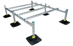 Kompletny zestaw do ustawiania urządzeń na dachach płaskich. Pasuje do najczęściej stosowanych jednostek klimatyzacyjnych i wentylacyjnych. Anty-poślizgowa mata izolująca zapewnia również izolację wibroakustyczną. Każdy zestaw ma określoną dopuszczalną nośność, nie ma konieczności wykonywania dodatkowych obliczeń. Waga ustawianego na stelażu urządzenia nie może przekraczać 150kg, wierzch urządzenia nie powinien być wyżej niż 1,2m nad poziomem dachu. Stopy wykonane są z WPC, kompozytu tworzywa sztucznego i włókien drewna. Elementy stalowe są w pokryciu powierzchni BIS UltraProtect, które zapewnia wyjątkową odporność antykorozyjną (odporność min. 1000 godzin w teście mgły solnej (max. 5% czerwonej rdzy)). Na stelażu można ustawić dwa urządzenia.