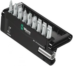 Zestaw Bit-Check. Zestawy Bit-Check umożliwiają szybki podgląd dostępnych narzędzi. Nieużywane groty są umieszczane z powrotem w kasecie, co wyklucza ryzyko ich zgubienia. Niekłopotliwy transport, np. w kieszeni koszuli. Uchwyt uniwersalny z korpusem ze stali nierdzewnej, pierścieniem przytrzymującym i silnym magnesem do grotów sześciokątnych 1/4" wg DIN ISO 1173-C 6,3. Do mocowania we wkrętarce lub uchwycie wiertarki elektronicznej. Z grotami Torsion odpornymi na przedwczesne zużycie. Elastyczne, do uniwersalnego zastosowania.