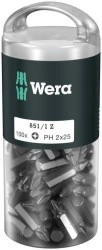 Bity ciągliwo-twarde firmy Wera do śrub z gniazdem Phillips, do uniwersalnego zastosowania. Chwyt sześciokątny 1/4" do uchwytów wg DIN ISO 1173-D 6,3.