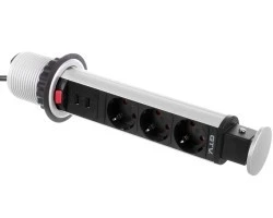 Biurkowy przedłużacz wpuszczany 60mm, 3x schuko, 2xUSB 2,1A 5V (srebrny)