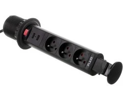 Biurkowy przedłużacz wpuszczany fi 60mm czarny 3x gniazdo z uziemieniem 2xUSB 2,1A 5V AE‑BPW3U60U‑20