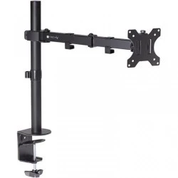Ramię Techly ICA-LCD 503BK2, PN: 365566 – Uchwyt Biurkowy Obrotowy Monitora LED/LCD 13”-27” do 8kg, Przegubowy, Klamra Parametry produktu: Typ uchwytu: biurkowy, obrotowy Przeznaczenie: monitor LED/LCD Typ montażu: klamra 10-88 mm Ilość obsługiwanych ekranów: 1 Ilość przegubów: 3 Wielkość ekranu: 13” - 27” Dopuszczalne obciążenie: 8kg Standard VESA: 75 x75 100 x 100 Opcje regulacji: Regulacja nachylenia: ±45° Regulacja w poziomie (skręt na przegubach): ±90° / ±120° / ±90° Regulacja w pionie (PIVOT): ±180° Regulacja wysokości: wzdłuż pionowego słupa do 400 mm Długość Wysięgnika: 270 - 425 mm System prowadzenia kabli: tak Zdejmowana pływa montażowa VESA: tak Materiał wykonania: stal Kolor: czarny Wymiary (szer. x wys. x gł.): 130 x 400 x 270 mm Średnica słupa: 35 mm Waga: 2. 424 kg Cechy produktu: Umożliwia szybki montaż monitora LCD/LED o wielkości od 13 do 27” ponad blatem biurka Zwiększa ilość powierzchni roboczej na biurku oraz poprawia ergonomię pracy Instalacja na klamrę do krawędzi blatu o grubości od 10 do 88 mm Przegubowy wysięgnik z 3 punktami regulacji skrętu prawo-lewo o ±90°/±120°/±90° Możliwość regulacji kąta nachylenia o ±45° Możliwość obrotu, zmiany orientacji poziom-pion wyświetlacza - PIVOT ±180° Możliwość obrotu wokół osi słupa oraz regulacji wzdłuż słupa o długości 400mm Mocowanie monitora na uchwycie w standardzie VESA 75x75 lub 100x100 Konstrukcja z najwyższej jakości stali gwarantuje maksimum bezpieczeństwa Wyposażony w uchwyty kablowe umożliwiające schludne ułożenie wszystkich przewodów W zestawie wszystkie niezbędne elementy montażowe Idealny do zastosowania w domu, w biurze oraz do instalacji komercyjnych Gwarancja 36 miesięcy Zawartość opakowania: Przegubowy uchwyt obrotowy do monitora 13-27” Elementy montażowe Instrukcja montażu