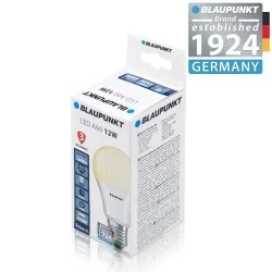 Żarówka elektryczna LED Blaupunkt ma mocowanie E27, jeden z popularniejszych gwintów. Żarówka ma moc 12W a jasność 1200 lumenów. Światło, jakie generuje, nie powoduje olśnienia, ponieważ jest rozproszone. Wskaźnik CRI/RA na wysokim poziomie sprawia, że żarówka Blaupunkt doskonale odwzorowuje kolory. Z powodzeniem może zastąpić tradycyjne żarówki o mocy do 60W. Diody LED najwyższej jakości to długa żywotność i trwałość żarówek Blaupunkt. Potwierdzają to odpowiednie certyfikaty CE, RoHS. Trzyletnia gwarancja zapewnia spokojne użytkowanie. Żarówka LED Blaupunkt występuje w dwóch barwach światła: białej ciepłej i białej naturalnej.