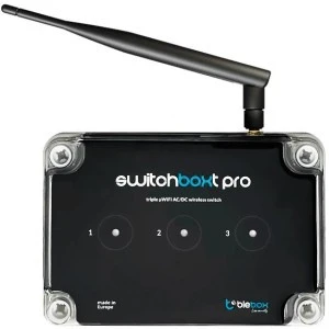 BleBox switchBoxT PRO to inteligentny, 3-kanałowy włącznik Wi-Fi, który umożliwia sterowanie trzema urządzeniami elektrycznymi o napięciu 0-230V AC/DC za pomocą smartfona, przycisków dotykowych lub automatycznych harmonogramów.
