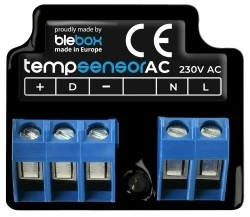 tempSensorAC jest to wersja produktu przeznaczona do zasilania 230V AC, bezpośrednio z sieci elektrycznej, bez dodatkowych zasilaczy, mieszcząca się w puszcze instalacyjnej.