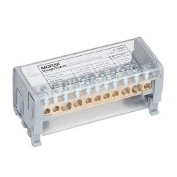 Możliwy jest montaż zarówno na szynach DIN, jak i na płytach montażowych za pomocą śrub. Części przewodzące wykonano z mosiądzu, natomiast śruby zaciskowe ze stali ocynkowanej.