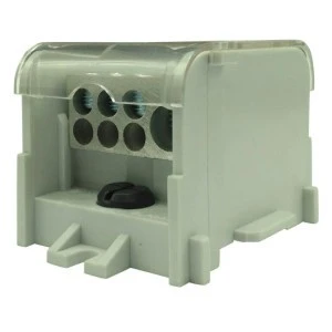 Blok dystrybucyjny DTB 120/50+6x16 w kolorze szarym. Blok posiada jedno połączenie wejściowe dla przewodów o przekroju od 35 mm2 do 120 mm2. Połączenia wyjściowe: jedno o zakresie połączeń od 10 mm2 do 50 mm2 i sześć o zakresie połączeń od 2,5 mm2 do 16 mm2. Złączkę można mocować do szyny montażowej TH 35 lub bezpośrednio. Temperatura pracy bloku dystrybucyjnego DTB od -25 °C do +100°C. Stopień ochrony IP 20. Testowany zgodnie z IEC 60947-7-1.