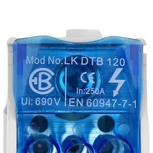 Blok dystrybucyjny LK DTB współpracuje z wieloma urządzeniami. Dzięki swoim właściwościom nadaje się do wykorzystania w nowoczesnych, jak i starszych systemach elektrycznych. Dołączona do bloku instrukcja w jasny, dla czytelnika, sposób przeprowadzi poprzez kolejne etapy instalacji. Prosty montaż bloku dystrybucyjnego pozwala na oszczędność czasu oraz zmniejszenie kosztów instalacji. Modułowy blok dystrybucyjny LK DTB 120 służy do rozgałęziania przewodów z jednego większego przekroju na kilka przewodów o mniejszym przekroju. Mostek dostępny jest w wersji 1-biegunowej z 12 jednostkami zaciskowymi. Śruby można dokręcać kluczem imbusowym i śrubokrętem PH 2. Rozdzielcze mostki posiadają łatwo otwieraną, przezroczystą górną pokrywę w kolorze niebieskim, wykonaną z tworzywa sztucznego. Powierzchnia śrub, która styka się z przewodem, jest specjalnie modyfikowana w celu zminimalizowania odkształceń przewodu, przy zachowaniu jak największego dokręcenia. Montaż odbywa się na szynie TH 35. Zgodny z normą EN 60947-7-1.