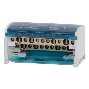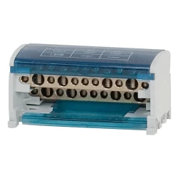 Blok rozdzielczy łączeniowy 2x11. Montaż natynkowy lub za pomocą szyny TH-35. Produkt służy do rozdziału mocy i energii z jednego obwodu głównego na kilka mniejszych.