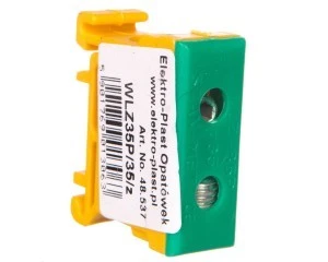 Blok rozdzielczy‑odgałęźny 1‑polowy AL/CU 2,5‑35mm2 żółto‑zielony montaż płaski i na szynę TH WLZ35P/35/z 48.537