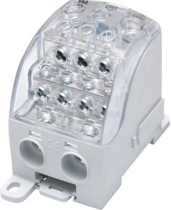 Bloki SUB przeznaczone są do stosowania różnorodnych okrągłych i sektorowych przewodów litych, wielożyłowych albo elastycznych, wykonanych zarówno z miedzi jak i aluminium. Montaz na szynie TS 35, zgodnie z IEC 60715 / DIN EB 50022 lub bezpośrednio do płyty montażowej. Wszystkie bloki rozdzielcze (bez względu na rozmiar) można dowolnie łaczyć ze sobą w sposób modułowy. Przezroczysta obudowa i schodkowy kształt korpusu pozwala na przejrzyste wprowadzanie przewodów i umożliwia sprawdzenie poprawności podłączenia. Brak konieczności przytrzymywania śrub w trakcie montażu znacząco go ułatwia. Zaokrąglone krawędzie zapobiegają obrażeniom dłoni. Bloki SUB wystepują w dwóch kolorach, niebieska osłona przeznaczona jest do przewodów neutralnych.