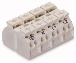 Blok zasilający 4‑biegunowy biały nadruk PE‑N‑L1‑L2 862‑9604 /200szt./